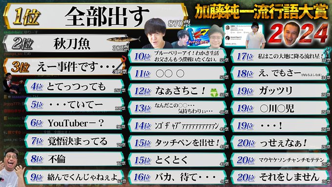 毎年恒例の加藤純一流行語大賞が12月24日に開催 加藤純一による恒例企画「加藤純一流行語大賞」が、12月24日20時頃より配信内で実施されることが発表された。本イベント... -