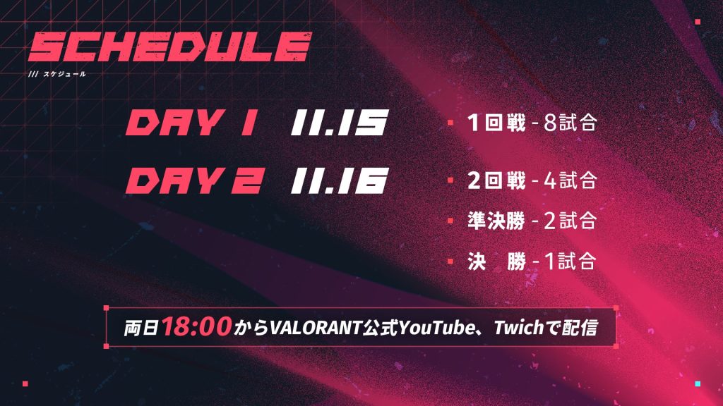 スケジュールは、11月15日に1回戦8試合を実施し、翌16日に2回戦4試合、準決勝2試合、そして決勝戦1試合が行われる予定。2日間を通して行われる本大会では、普段見られない組み合わせのチームによる対戦が見どころとなりそうだ。